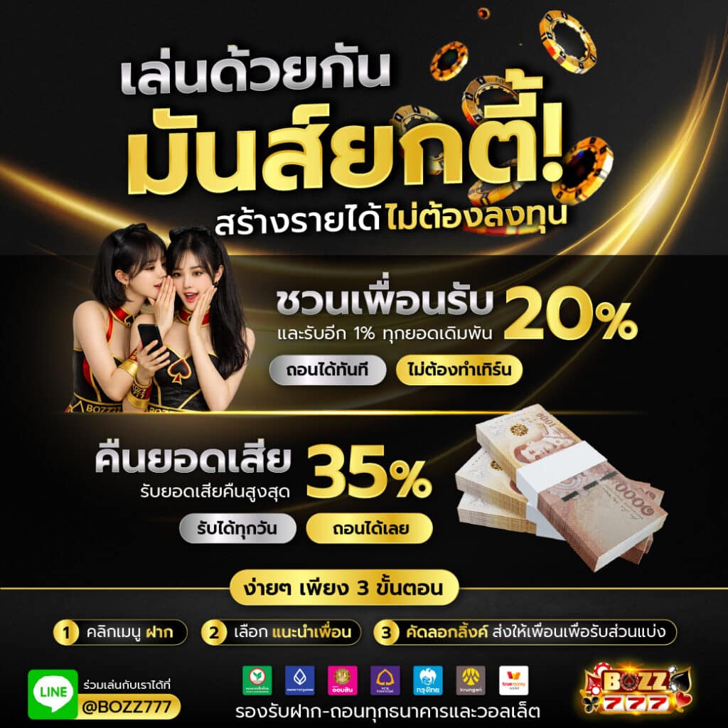 - ส่งลิงค์รับทรัพย์ รับค่าคอมฯจากยอดเดิมพันที่เพื่อนเล่น สูงสุด 1%
