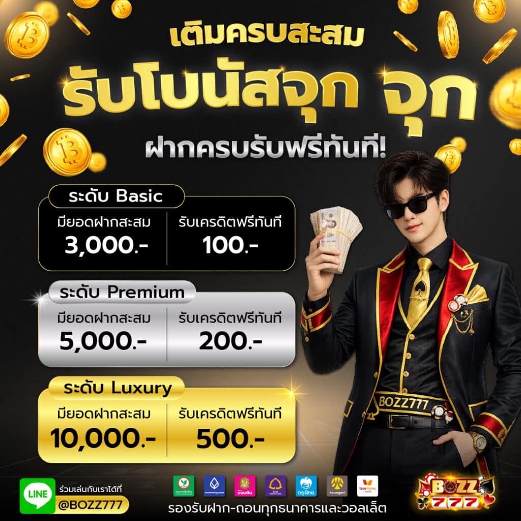 BOZZ777 รวมโปรโมชั่นยอดนิยมไว้ครบ เช่น โบนัสสมาชิกใหม่ โบนัสฝากครั้งแรก เครดิตฟรีไม่ต้องฝาก และโปรโมชั่นคืนยอดเสีย ผู้เล่นสามารถเลือกใช้งานได้ตามสไตล์การเล่น ไม่ว่าจะเป็นสายทุนน้อยหรือสายลงทุนหนัก ก็สามารถใช้โปรโมชั่นเพื่อเพิ่มโอกาสทำกำไรได้มากขึ้น